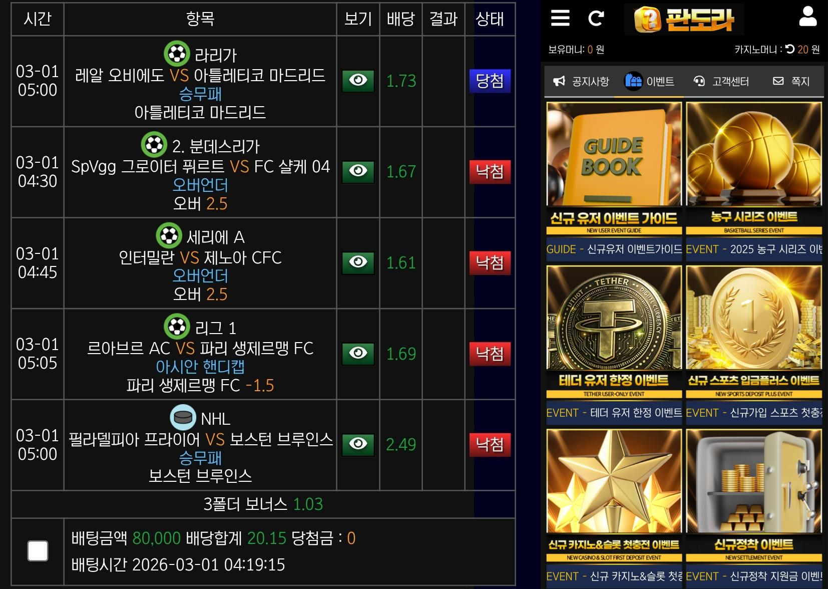 일단 2월쯤에 가입해서 꾸준히 이용중인데 사이트가 메이저라 그런지 보기가 깔끔하고 배팅하기도 좋고 실시간도 빠르게 배팅이 가능합니다. 환전도 받아 봤는데 안심해도 될 것 같습니다. 이용해보세요![]()