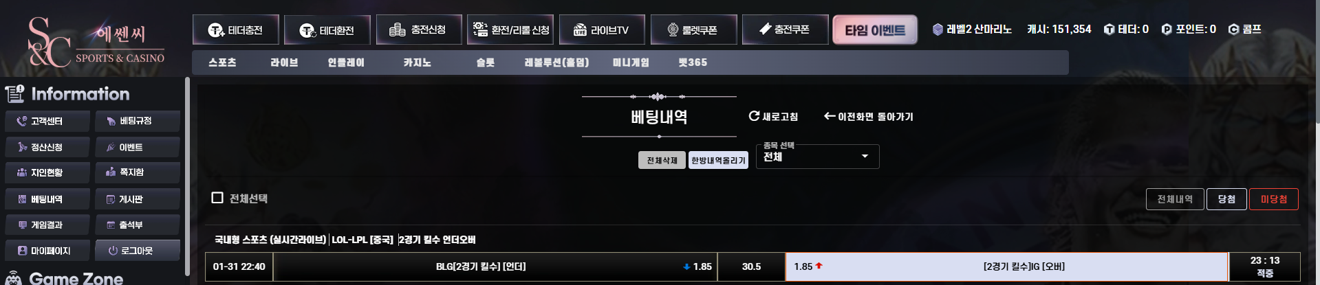 스포츠 크로스 동일경기 승+오버베팅 가능