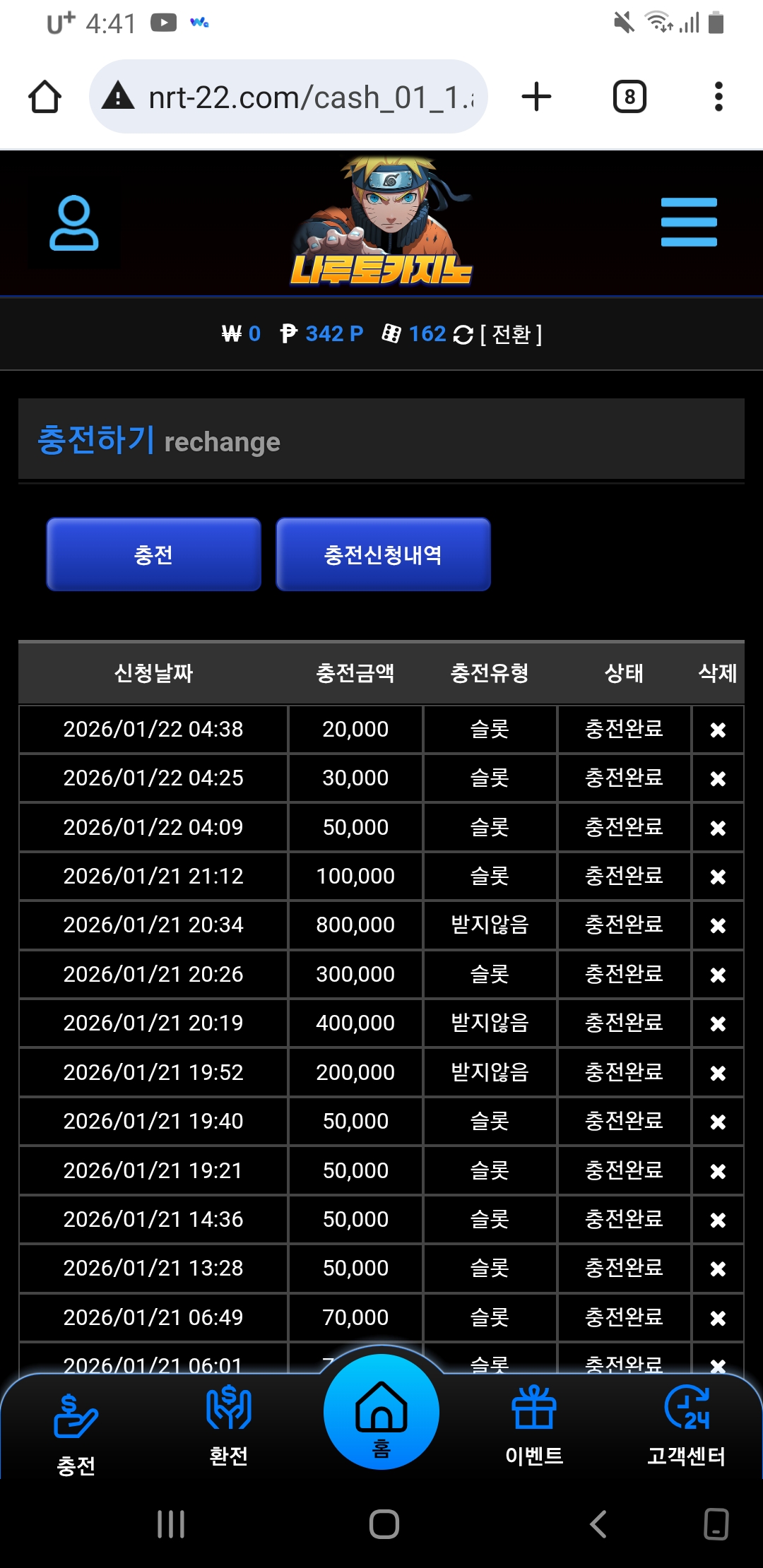 나루토카지노를 사용중이여서