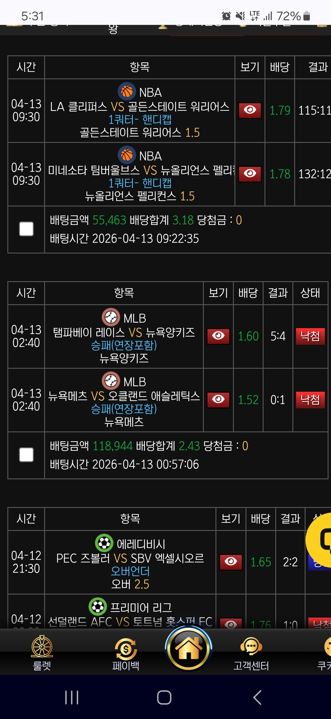 블랙 배팅후기입니다 이제 느바 끝났네요 다들건승